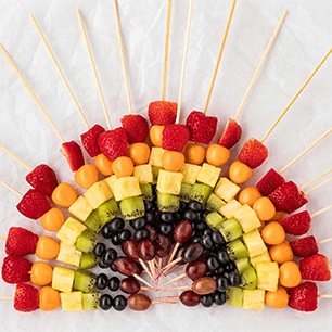 Fruit kabobs: Four types of fruit with topping and sauces!!